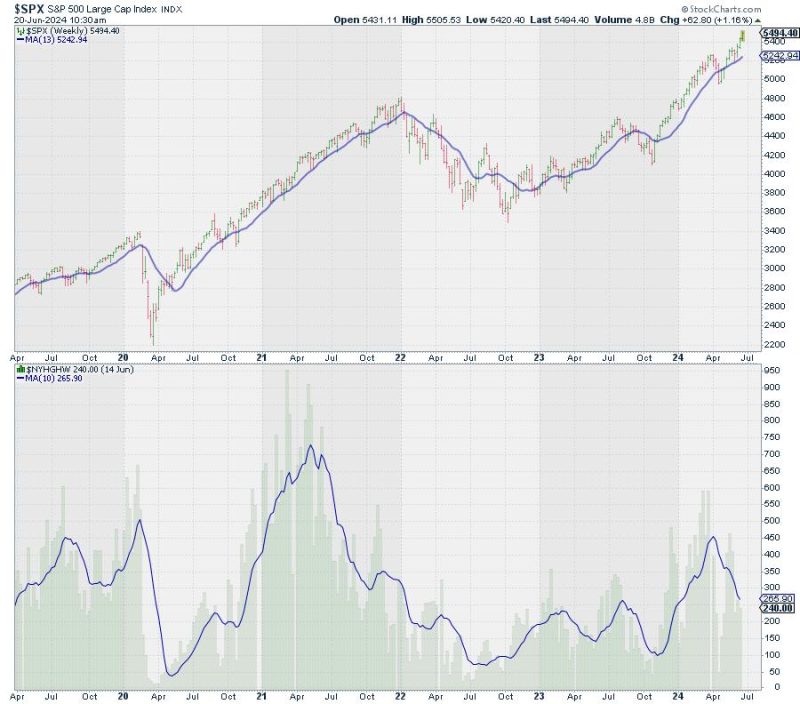 One of the first charts in my chart list is a chart of the S&P 500 with the new 52-week highs.