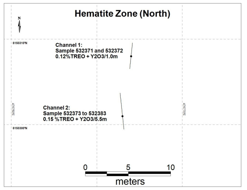 Figure 4: Hematite North Zone with channel samples (Adapted from Reference 2)