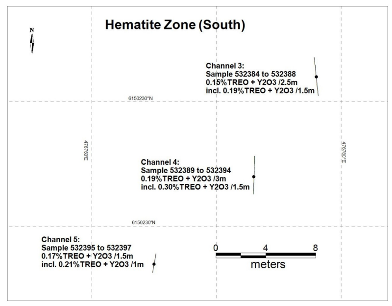 Figure 5: Hematite South Zone with channel samples (Adapted from Reference 2)
