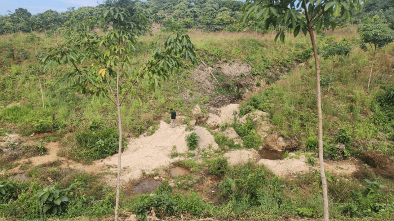 Figure 1 Angkor staff survey the creek bed area after artisanal miners through rainy season in the zone at the base of CZ Gold Prospect