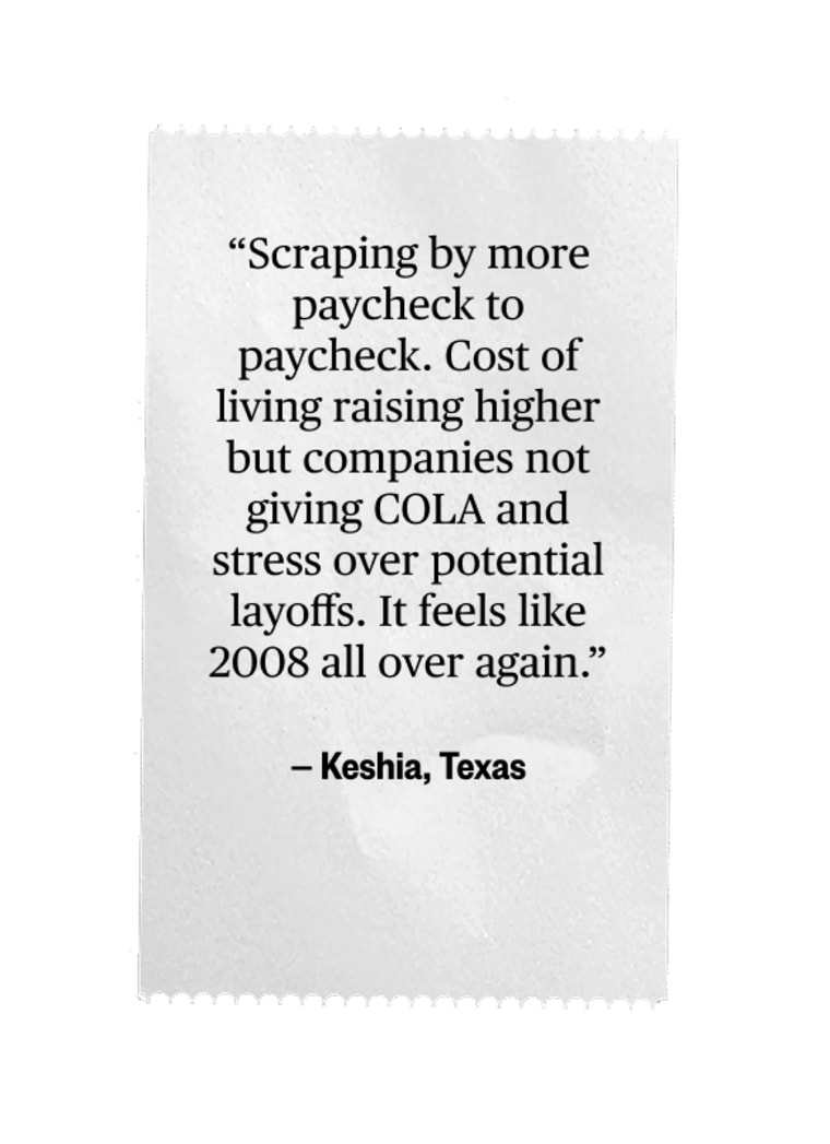 For “Unaffordable America,” a yearlong series on the causes and effects of rising economic inequality, NBC News asked readers how they were faring and heard from hundreds of people. In interviews and written responses, many described struggling to find a job and afford higher food prices and health care costs, while others said they were benefiting from gains in the stock market and lower interest rates.